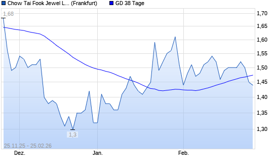 Mit dem Rücksetzer auf 1,45 EUR hat die CHOW TAI FOOK JEWEL.-Aktie am 24.02.2026 die 38-Tage-Linie nach unten gekreuzt.