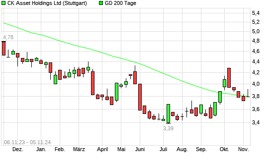 Mit dem Anstieg auf 3,72 EUR hat die CK Asset Holdings-Aktie am 04.11.2024 die 200-Tage-Linie nach oben gekreuzt.