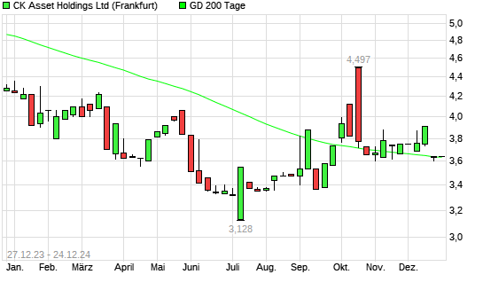 Mit dem Anstieg auf 3,64 EUR hat die CK Asset Holdings-Aktie am 23.12.2024 die 200-Tage-Linie nach oben gekreuzt.