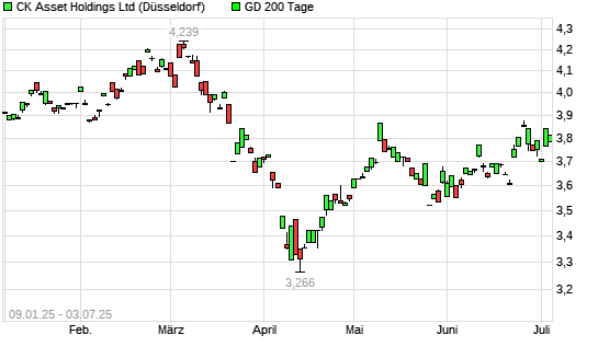 Mit dem Anstieg auf 3,79 EUR hat die CK Asset Holdings-Aktie am 02.07.2025 die 200-Tage-Linie nach oben gekreuzt.