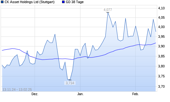 Mit dem Anstieg auf 3,89 EUR hat die CK Asset Holdings-Aktie am 12.02.2025 die 38-Tage-Linie nach oben gekreuzt.