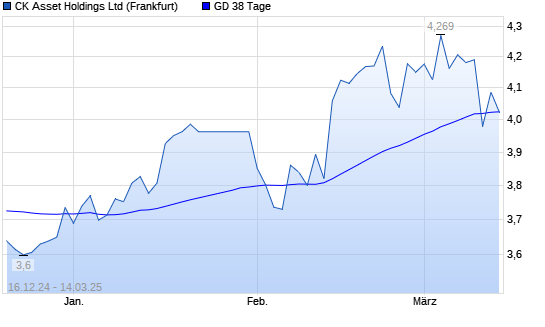 Mit dem Anstieg auf 4,09 EUR hat die CK Asset Holdings-Aktie am 13.03.2025 die 38-Tage-Linie nach oben gekreuzt.