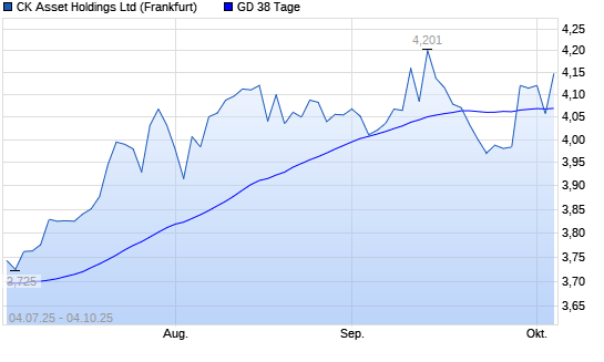 Mit dem Anstieg auf 4,15 EUR hat die CK Asset Holdings-Aktie am 03.10.2025 die 38-Tage-Linie nach oben gekreuzt.
