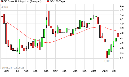 Mit dem Rücksetzer auf 3,78 EUR hat die CK Asset Holdings-Aktie am 14.05.2025 die 100-Tage-Linie nach unten gekreuzt.