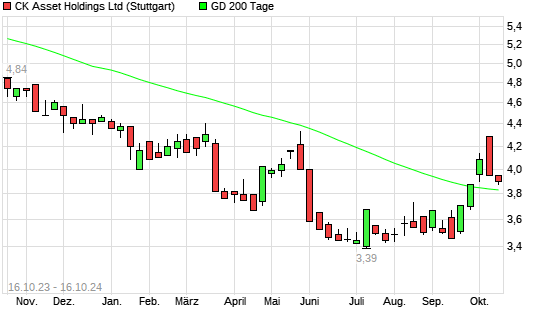 Mit dem Rücksetzer auf 3,71 EUR hat die CK Asset Holdings-Aktie am 15.10.2024 die 200-Tage-Linie nach unten gekreuzt.