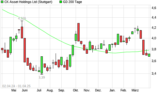 Mit dem Rücksetzer auf 3,70 EUR hat die CK Asset Holdings-Aktie am 31.03.2025 die 200-Tage-Linie nach unten gekreuzt.