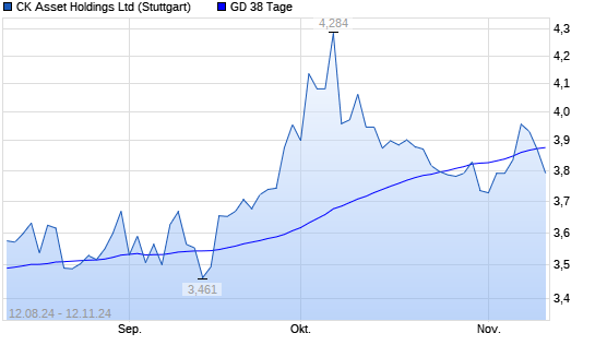 Mit dem Rücksetzer auf 3,74 EUR hat die CK Asset Holdings-Aktie am 11.11.2024 die 38-Tage-Linie nach unten gekreuzt.