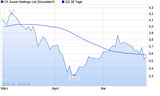 Mit dem Rücksetzer auf 3,53 EUR hat die CK Asset Holdings-Aktie am 27.05.2025 die 38-Tage-Linie nach unten gekreuzt.