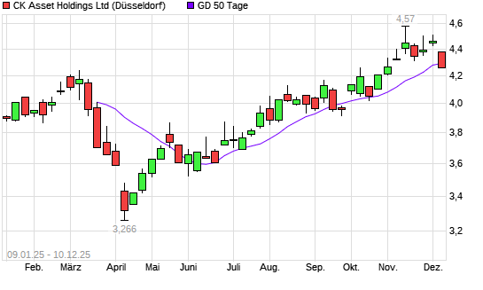 Mit dem Rücksetzer auf 4,27 EUR hat die CK Asset Holdings-Aktie am 09.12.2025 die 50-Tage-Linie nach unten gekreuzt.