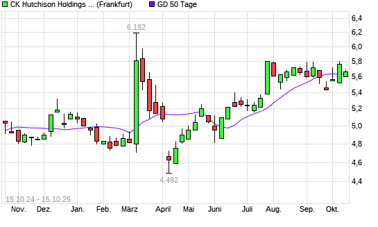 Mit dem Anstieg auf 5,69 EUR hat die CK Hutchison Holdings-Aktie am 14.10.2025 die 50-Tage-Linie nach oben gekreuzt.