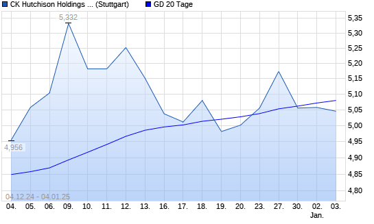 Mit dem Rücksetzer auf 5,08 EUR hat die CK Hutchison Holdings-Aktie am 03.01.2025 die 20-Tage-Linie nach unten gekreuzt.