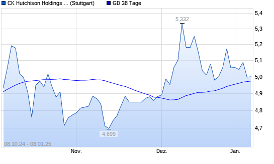 Mit dem Rücksetzer auf 5,04 EUR hat die CK Hutchison Holdings-Aktie am 07.01.2025 die 38-Tage-Linie nach unten gekreuzt.