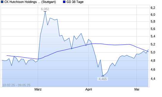 Mit dem Rücksetzer auf 4,99 EUR hat die CK Hutchison Holdings-Aktie am 08.05.2025 die 38-Tage-Linie nach unten gekreuzt.