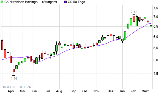 Mit dem Rücksetzer auf 6,47 EUR hat die CK Hutchison Holdings-Aktie am 09.03.2026 die 50-Tage-Linie nach unten gekreuzt.
