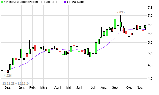 Mit dem Anstieg auf 6,30 EUR hat die CK Infrastructure Holdings-Aktie am 11.11.2024 die 50-Tage-Linie nach oben gekreuzt.