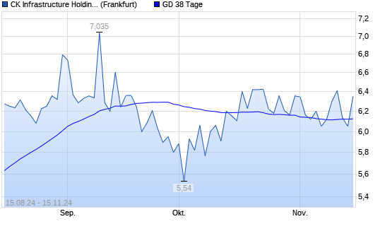Mit dem Rücksetzer auf 6,05 EUR hat die CK Infrastructure Holdings-Aktie am 14.11.2024 die 38-Tage-Linie nach unten gekreuzt.