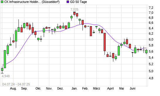 Mit dem Rücksetzer auf 5,60 EUR hat die CK Infrastructure Holdings-Aktie am 03.07.2025 die 50-Tage-Linie nach unten gekreuzt.