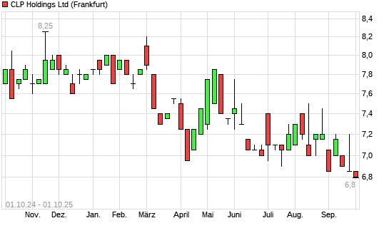 Mit dem Rücksetzer auf 6,80 EUR hat die CLP Holdings-Aktie (ISIN HK0002007356) am 30.09.2025 ein neues 12-Monats-Tief erreicht und damit den Kurs vom 04.09.2025 eingestellt.