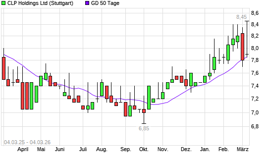 Mit dem Anstieg auf 8,10 EUR hat die CLP Holdings-Aktie am 03.03.2026 die 50-Tage-Linie nach oben gekreuzt.