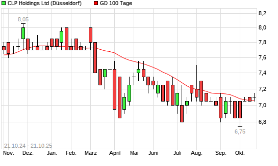 Mit dem Rücksetzer auf 7,05 EUR hat die CLP Holdings-Aktie am 20.10.2025 die 100-Tage-Linie nach unten gekreuzt.