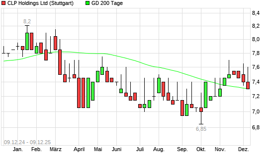Mit dem Rücksetzer auf 7,20 EUR hat die CLP Holdings-Aktie am 08.12.2025 die 200-Tage-Linie nach unten gekreuzt.