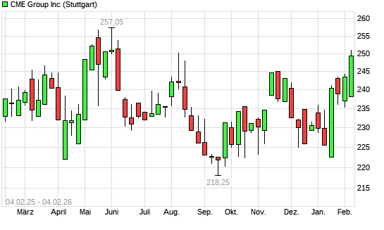 Mit dem Anstieg auf 247,85 EUR hat die CME Group-Aktie (ISIN US12572Q1058) am 03.02.2026 ein neues 6-Monats-Hoch erreicht und damit den Kurs vom 04.08.2025 eingestellt.