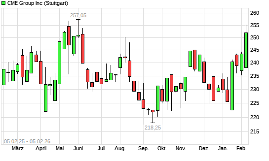 Mit dem Anstieg auf 249,25 EUR hat die CME Group-Aktie (ISIN US12572Q1058) am 04.02.2026 ein neues 6-Monats-Hoch erreicht und damit den Kurs vom 03.02.2026 eingestellt.