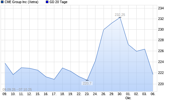 Mit dem Rücksetzer auf 222,90 EUR hat die CME Group-Aktie am 06.10.2025 die 20-Tage-Linie nach unten gekreuzt.