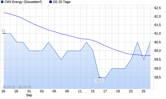 Mit dem Anstieg auf 60,50 EUR hat die CMS Energy-Aktie am 25.09.2025 die 20-Tage-Linie nach oben gekreuzt.