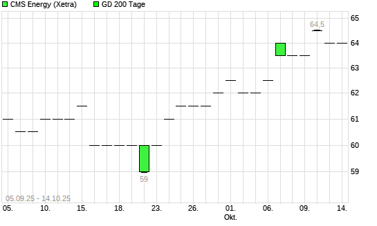 Mit dem Anstieg auf 64,00 EUR hat die CMS Energy-Aktie am 13.10.2025 die 200-Tage-Linie nach oben gekreuzt.