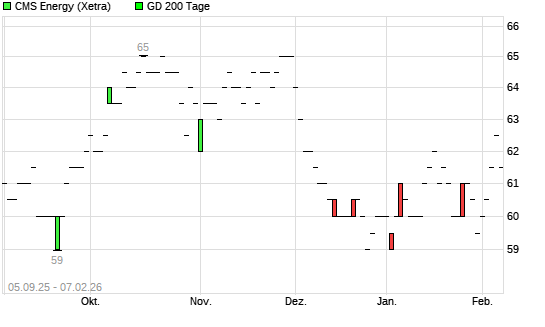 Mit dem Anstieg auf 61,50 EUR hat die CMS Energy-Aktie am 06.02.2026 die 200-Tage-Linie nach oben gekreuzt.