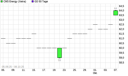 Mit dem Anstieg auf 62,00 EUR hat die CMS Energy-Aktie am 07.10.2025 die 50-Tage-Linie nach oben gekreuzt.