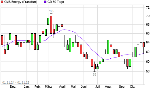 Mit dem Anstieg auf 63,00 EUR hat die CMS Energy-Aktie am 31.10.2025 die 50-Tage-Linie nach oben gekreuzt.