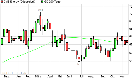 Mit dem Rücksetzer auf 63,00 EUR hat die CMS Energy-Aktie am 14.11.2025 die 200-Tage-Linie nach unten gekreuzt.