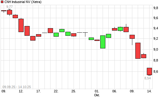 Mit dem Rücksetzer auf 8,72 EUR hat die CNH Industrial-Aktie (ISIN NL0010545661) am 13.10.2025 ein neues 12-Monats-Tief erreicht und damit den Kurs vom 10.10.2025 eingestellt.