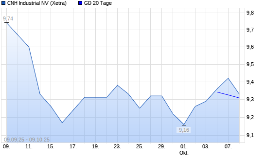 Mit dem Anstieg auf 9,27 EUR hat die CNH Industrial-Aktie am 08.10.2025 die 20-Tage-Linie nach oben gekreuzt.