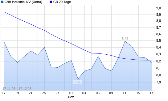 Mit dem Rücksetzer auf 7,97 EUR hat die CNH Industrial-Aktie am 16.12.2025 die 20-Tage-Linie nach unten gekreuzt.