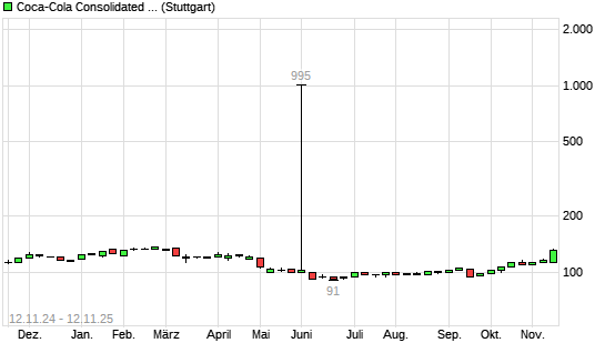 Mit dem Anstieg auf 124,00 EUR hat die COCA-COLA BOTTLING CO CONSOLID-Aktie (ISIN US1910981026) am 11.11.2025 ein neues 6-Monats-Hoch erreicht und damit den Kurs vom 07.11.2025 eingestellt.