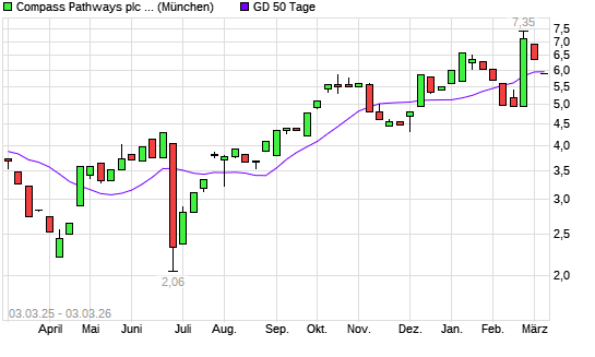 Mit dem Rücksetzer auf 5,90 EUR hat die COMPASS PATHW SP.ADR-Aktie am 02.03.2026 die 50-Tage-Linie nach unten gekreuzt.