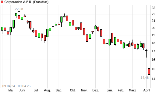 Mit dem Rücksetzer auf 15,40 EUR hat die CORPORACION A.E.R.-Aktie (ISIN ES0105563003) am 08.04.2025 ein neues All-Time-Low erreicht und damit den Kurs vom 07.04.2025 eingestellt.