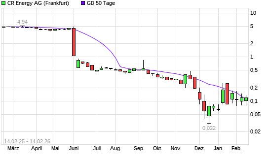 Mit dem Anstieg auf 0,12 EUR hat die CR Energy-Aktie am 13.02.2026 die 50-Tage-Linie nach oben gekreuzt.