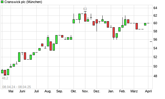 Mit dem Rücksetzer auf 54,00 EUR hat die CRANSWICK-Aktie (ISIN GB0002318888) am 07.04.2025 ein neues 6-Monats-Tief erreicht und damit den Kurs vom 15.01.2025 eingestellt.