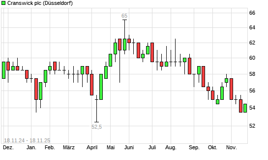 Mit dem Rücksetzer auf 54,00 EUR hat die CRANSWICK-Aktie (ISIN GB0002318888) am 17.11.2025 ein neues 6-Monats-Tief erreicht und damit den Kurs vom 14.11.2025 eingestellt.