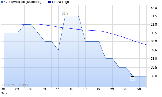 Mit dem Anstieg auf 58,50 EUR hat die CRANSWICK-Aktie am 29.09.2025 die 20-Tage-Linie nach oben gekreuzt.