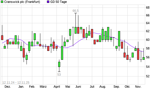 Mit dem Anstieg auf 58,00 EUR hat die CRANSWICK-Aktie am 11.11.2025 die 50-Tage-Linie nach oben gekreuzt.