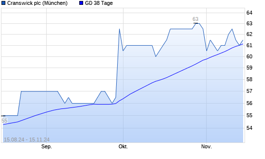 Mit dem Rücksetzer auf 60,00 EUR hat die CRANSWICK-Aktie am 14.11.2024 die 38-Tage-Linie nach unten gekreuzt.