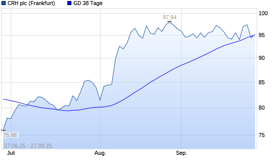 Mit dem Anstieg auf 95,18 EUR hat die CRH-Aktie am 26.09.2025 die 38-Tage-Linie nach oben gekreuzt.