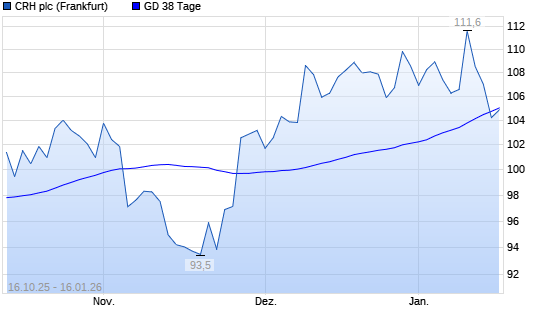 Mit dem Rücksetzer auf 104,20 EUR hat die CRH-Aktie am 15.01.2026 die 38-Tage-Linie nach unten gekreuzt.