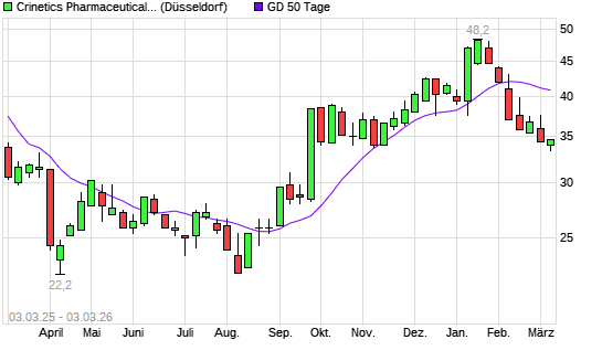 Mit dem Rücksetzer auf 33,60 EUR hat die CRINETICS PHARM.-Aktie am 02.03.2026 die 50-Tage-Linie nach unten gekreuzt.