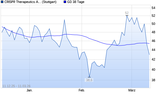 Mit dem Rücksetzer auf 45,20 EUR hat die CRISPR Therapeutics-Aktie am 10.03.2026 die 38-Tage-Linie nach unten gekreuzt.